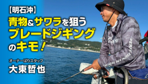 兵庫県・明石沖でオーナーばりの大東哲也とリポーターののぞみさんが、ブレードジギングでの青物狙いにチャレンジ!軽めのメタルジグを投げ、高速で巻いてきて逃げる小魚を演出、逃すものかと追いかける青物に喰い気のスイッチを入れるという釣り方です。この釣りでは狙うタナ、ジグの動き、スピードも大切ですが、最も重要なのが青物の喰い気を誘うプレードと、ファーストコンタクトするフック。撮影時は予想外の激渋のなか、青物のチェイスはあるものの勢いよく喰ってくるまで至らず苦戦する2人。フックの形状を変え、なんとか1匹を!と休む時間も惜しんでやり続けた2人に待望の青物。熱血ルアー釣りの模様をお楽しみください!