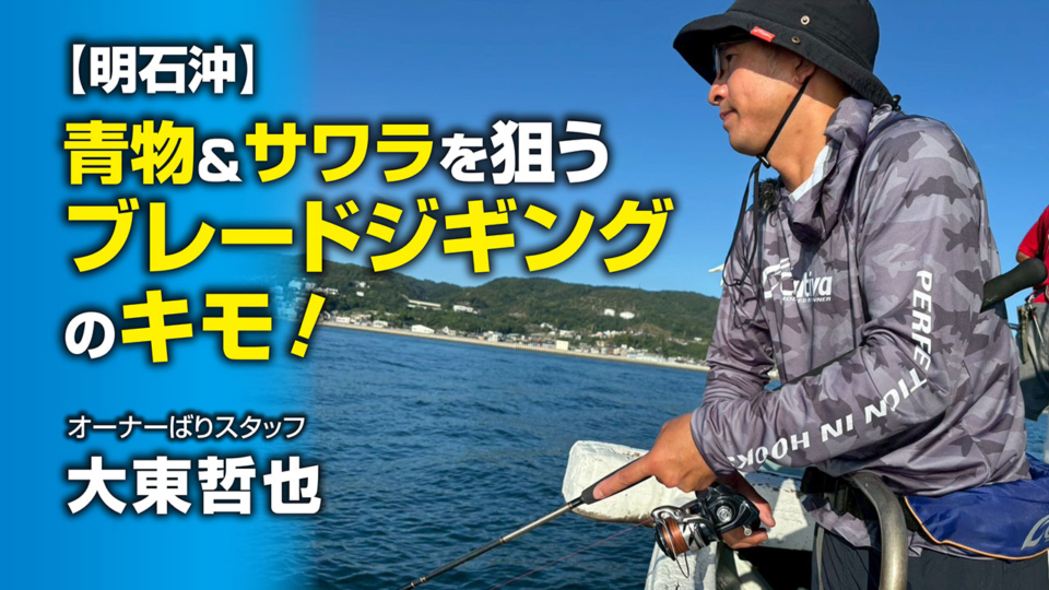 兵庫県・明石沖でオーナーばりの大東哲也とリポーターののぞみさんが、ブレードジギングでの青物狙いにチャレンジ!軽めのメタルジグを投げ、高速で巻いてきて逃げる小魚を演出、逃すものかと追いかける青物に喰い気のスイッチを入れるという釣り方です。この釣りでは狙うタナ、ジグの動き、スピードも大切ですが、最も重要なのが青物の喰い気を誘うプレードと、ファーストコンタクトするフック。撮影時は予想外の激渋のなか、青物のチェイスはあるものの勢いよく喰ってくるまで至らず苦戦する2人。フックの形状を変え、なんとか1匹を!と休む時間も惜しんでやり続けた2人に待望の青物。熱血ルアー釣りの模様をお楽しみください!