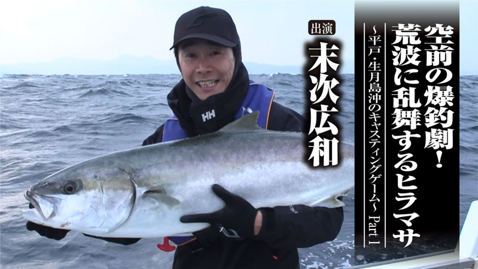 長崎県平戸島の北西、生月島の沖合。日本海へと疾る対馬海流の恩恵を享受する海域は魚影濃く…オフショアフィッシングの魅力に満ち溢れ、アングラーの闘争心をこの上なく掻き立てる。時化で荒ぶる海に怯むことなく対峙し、ビッグルアーでヒラマサに挑むのは末次広和さん。自己ベストは3年前に手にした29キロ。渾身のキャストが寒風を切り裂く!
