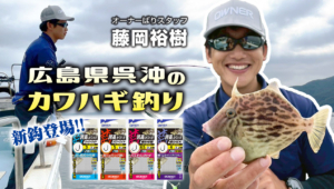 広島県呉沖へやってきた「オーナーばり」藤岡裕樹が、「海猫丸」さんにお世話になりカワハギを狙います!“誇高カワハギ”シリーズを駆使し、エサの付け方や誘いのタイミングなど、釣果を伸ばす実践テクニックを詳しく解説♪走りの時期で群れが薄い中、激しいベラの猛攻に苦戦しながらも、粘りのテクニックで本命カワハギを手に!