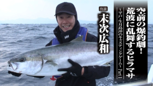 長崎県平戸島の北西、生月島の沖合。日本海へと疾る対馬海流の恩恵を享受する海域は魚影濃く…オフショアフィッシングの魅力に満ち溢れ、アングラーの闘争心をこの上なく掻き立てる。時化で荒ぶる海に怯むことなく対峙し、ビッグルアーでヒラマサに挑むのは末次広和さん。自己ベストは3年前に手にした29キロ。渾身のキャストが寒風を切り裂く!